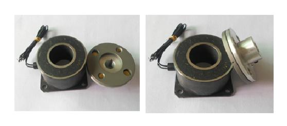 東莞天機傳動(臺灣天機牌)微型電磁制動器亦是使用DC24V,其扭矩0.5Nm-5Nm稱之為微型扭矩。安裝法蘭可方形或者圓形但是4個安裝孔的尺寸不變(根據型號的大小變化)。微型電磁制動器定子通過法蘭安裝的型號,可以簡單地安裝到劈面/安裝板上。 微型電磁制動器由內置線圈的定子、填入填充材料的定子及電樞單元構成,定子通過安裝法蘭切實地固定到機械的支架等緊固的靜止部位。電樞單元由電、彈簧片及電樞輪轂組成,與旋轉子機對,并保持一定的間隙(0.2mm),正確進行組合,固定到被制動的軸(旋轉體)上。